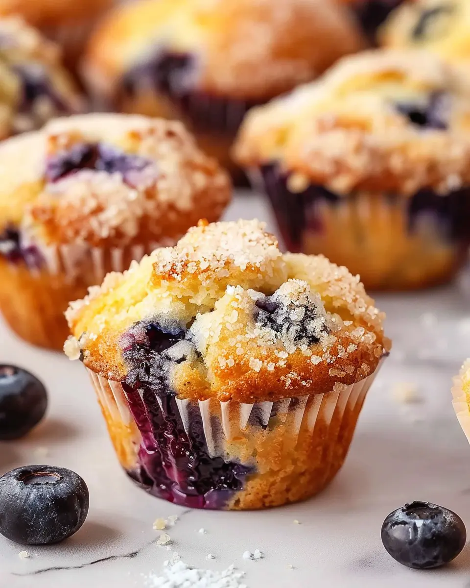 These blueberry muffins are the ultimate treat for breakfast or an afternoon snack. Moist, fluffy, and bursting with fresh blueberries, they are sure to become a favorite.