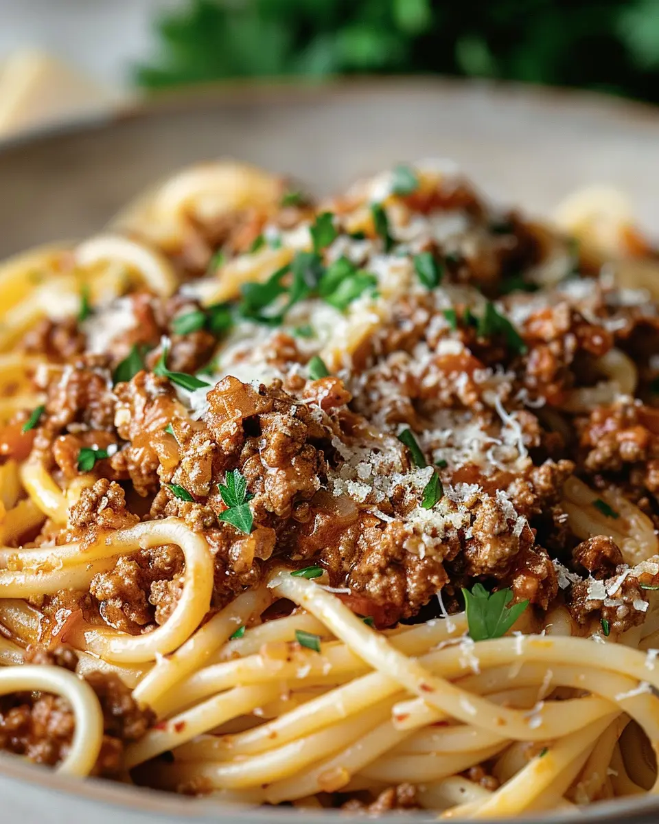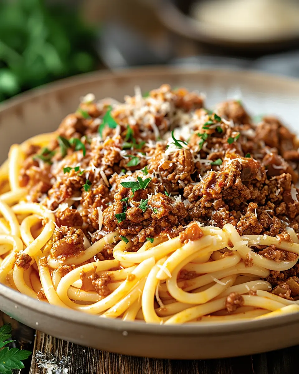 PrintWhite Bolognese Sauce: A Creamy, Indulgent Twist with Turkey Bacon
